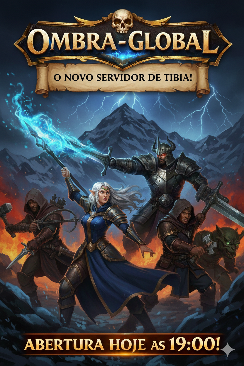 Após meses de dedicação e desenvolvimento, o Ombra-Global finalmente abre seus portões. Prepare-se para uma experiência imersiva com jogabilidade refinada, estabilidade total e o menor ping do mercado. Nossa equipe trabalhou em cada detalhe para garantir a sua diversão. Sejam bem-vindos ao novo padrão de Tibia Global. A jornada começa agora!